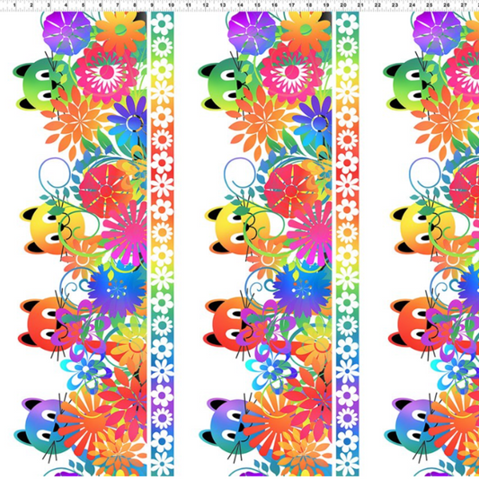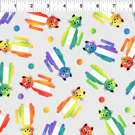 PAWsitivity Tossed Rainbow Kitties Iron Gray 3 yard cut