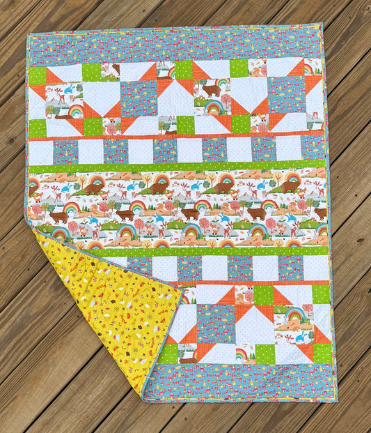 Forest Friends Orange 36" x 45" Handmade Baby Quilt