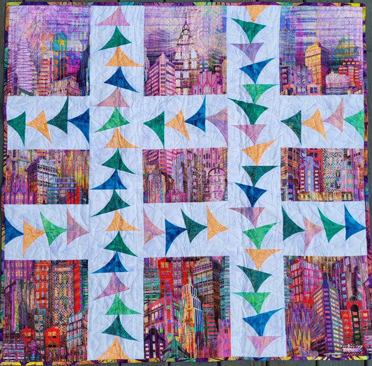 Flying Through the City 42" x 42" Handmade Wall Hanging / Table Topper / Lap Quilt
