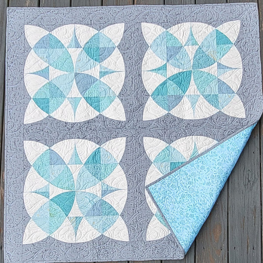 Country Revival Soft Aqua & Gray 44" x 44" Handmade Wall Hanging, Table Topper, or Throw Quilt