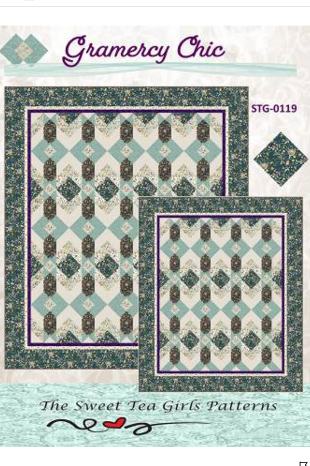Gramercy Chic is an elegant collection of simple blocks. Use a beautiful large print focus fabric for impact; add coordinating prints and tonals to highlight the focus blocks.