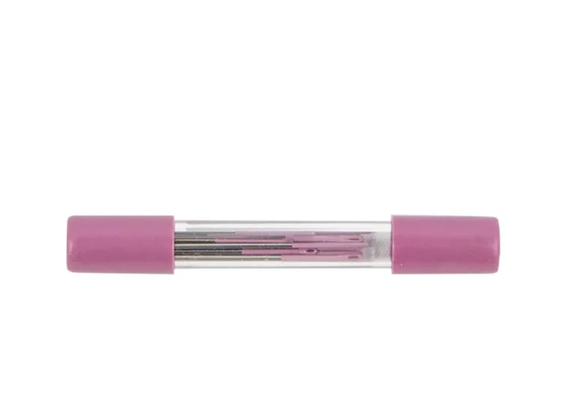 Lori Holt’s Nifty Needles™ Binding Tube is the perfect addition to your quilting and sewing notions. This set includes 18 high-quality sharps needles (5 each in sizes 3, 7, and 9), ideal for binding and general sewing projects. Each needle features a color-coded pink eye, making it easy to stay organized and quickly find the right size. Packaged in a reusable plastic tube for safe storage, these needles are both practical and stylish. A must-have for quilters, sewists, and anyone who loves hand stitching!