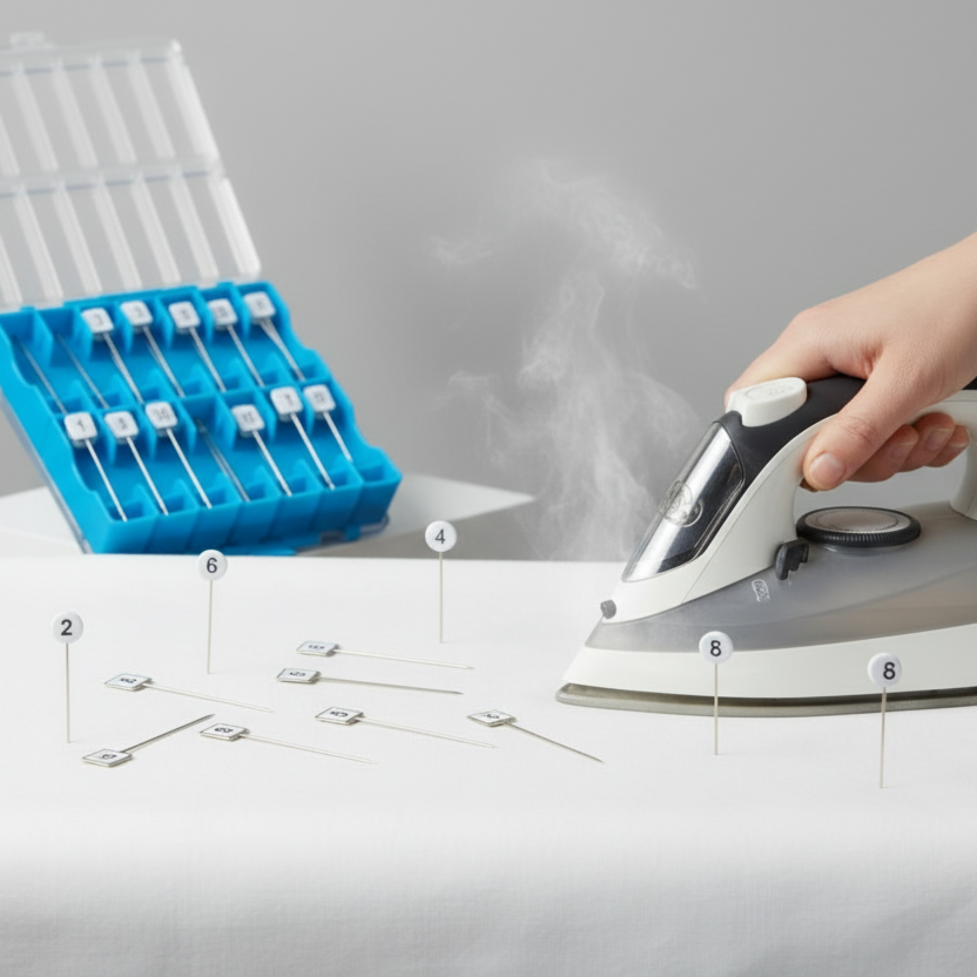 Take the guesswork out of quilt assembly with Magic Alphabet, Numbers & Arrows Pins™ by Taylor Seville Originals. This 97-piece set includes fine, sharp pins with heat-resistant, comfort-grip handles for easy handling and durability. Designed for quilters, each pin is clearly marked with letters, numbers, or arrows—perfect for labeling blocks, identifying rows, and marking pressing or stitching directions.