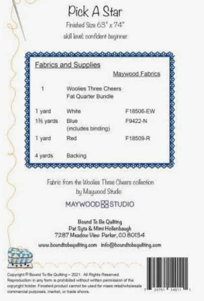 Fabrics, patterns, custom-made quilts, and custom-made table runners are not returnable. We will be happy to replace or refund any defective or incorrect item. Please contact us within 10 days after receipt of the order for details. Approved returns are subject to a 20% restocking fee; original shipping and return shipping are not refundable. All sales from our clearance categories, or items otherwise reduced from regular retail prices may not be returned.