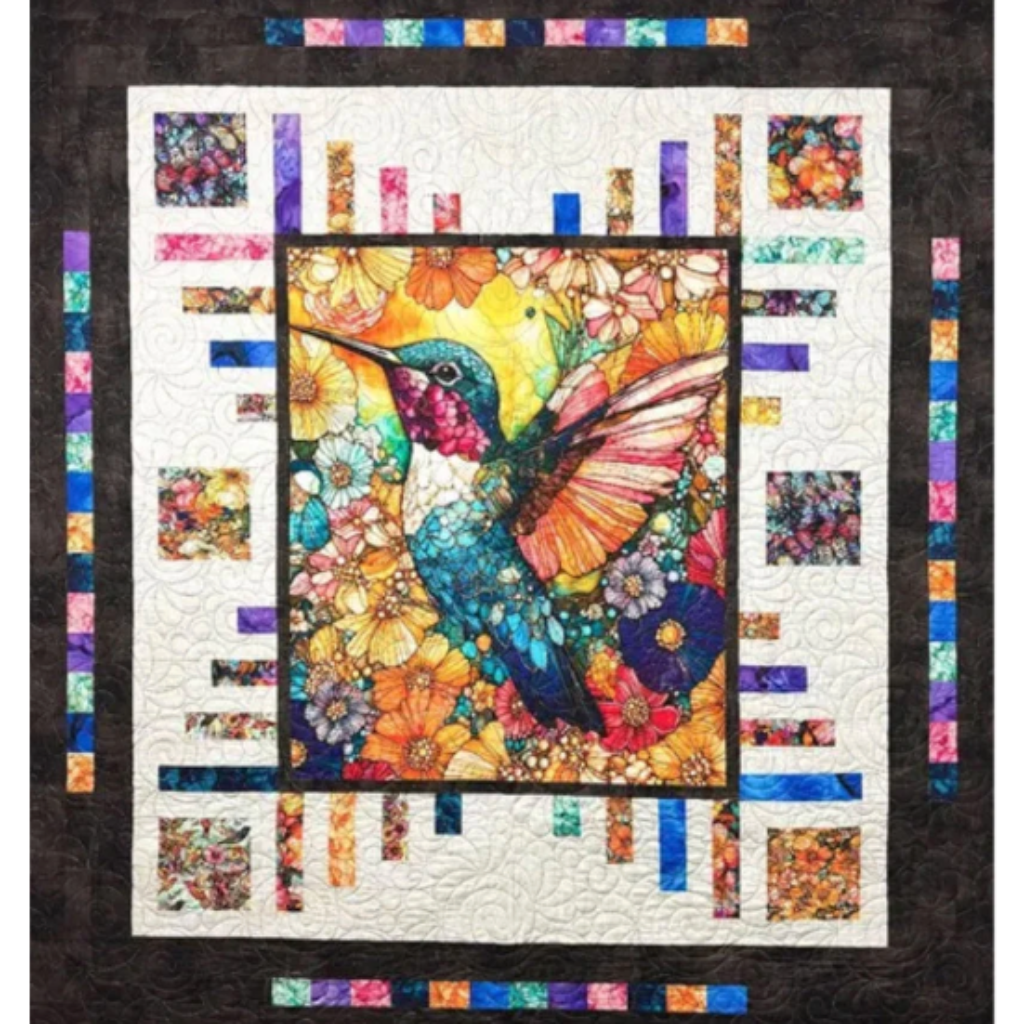 Bar Hop is a precut-friendly quilt pattern to make a 51 1/2 x 50" Lap/Wall quilt or a 87 x 84" Queen quilt. Charm Packs, Layer Cakes or Jelly Rolls can be used with background yardage. Small quilt has extra outside border. Use Fat Quarters OR the Wild Blossoms WOF print for large horizontal bands which contrast with the smaller vertical bars. Great for playing with color within the little bars.