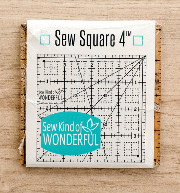 6in square up ruler with easy to read lines and numbers. Sew Square rulers can easily be marked with a permanent marker (ie: Sharpie) for other patterns and other square up points. Marks can easily be removed with a little nail polish remover.