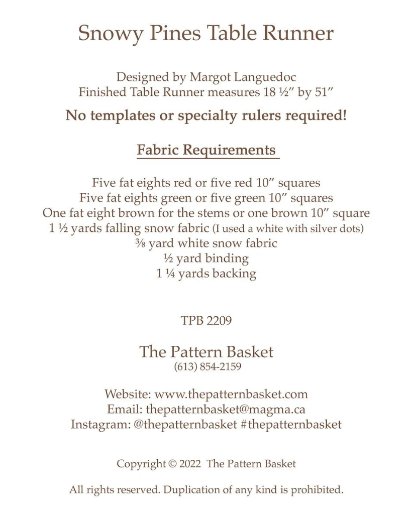 Made using fat eighths or 10" squares, Snowy Pines is simple to piece with standard machine sewing techniques. Clear instructions guide you through each step, making it a fun and approachable project with a polished, cozy finish.