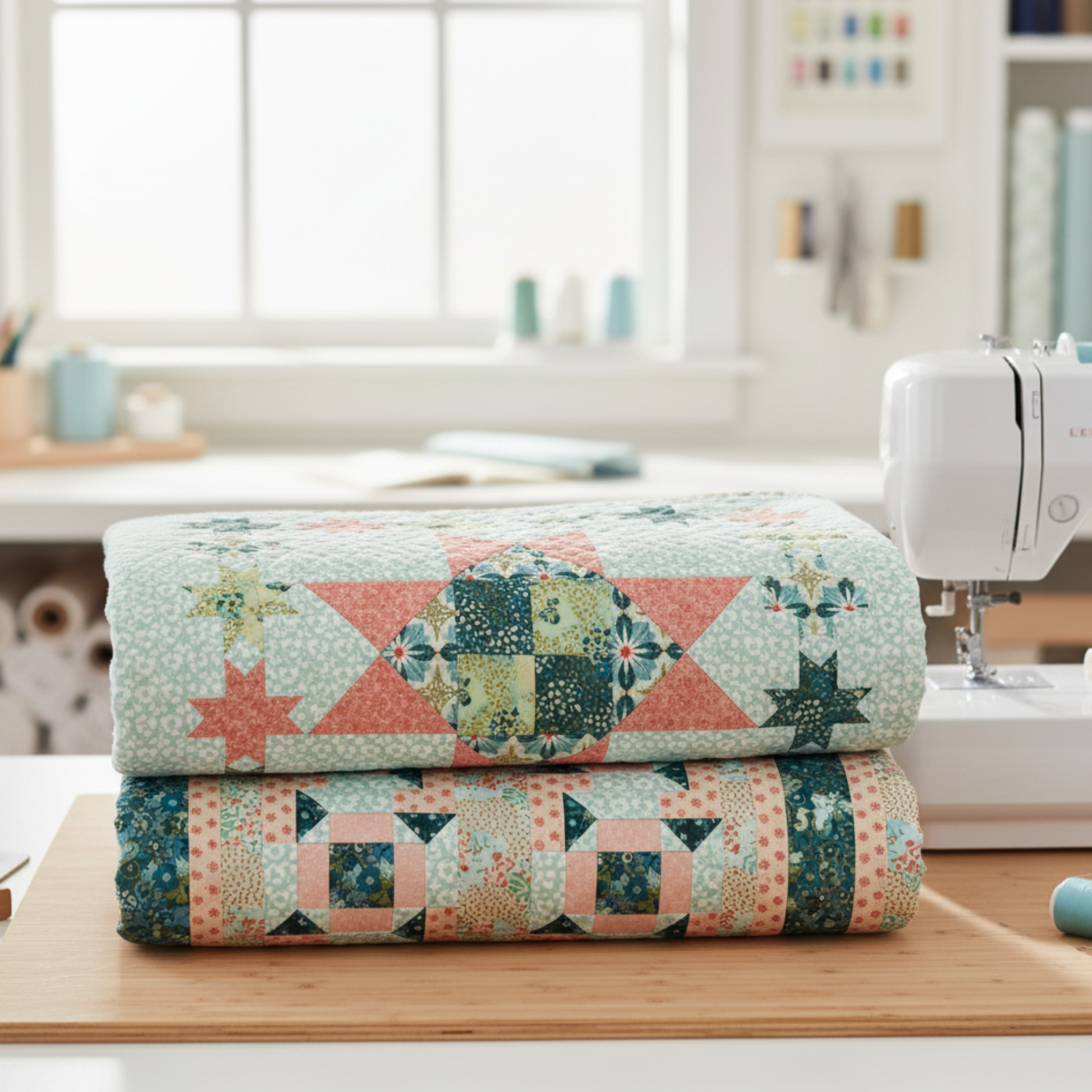 Designed for confident beginners, both quilts use standard machine sewing techniques and feature clean, versatile designs suitable for gifting, seasonal décor, or everyday use. With minimal fabric requirements and maximum impact, this pattern delivers great value and endless fun.